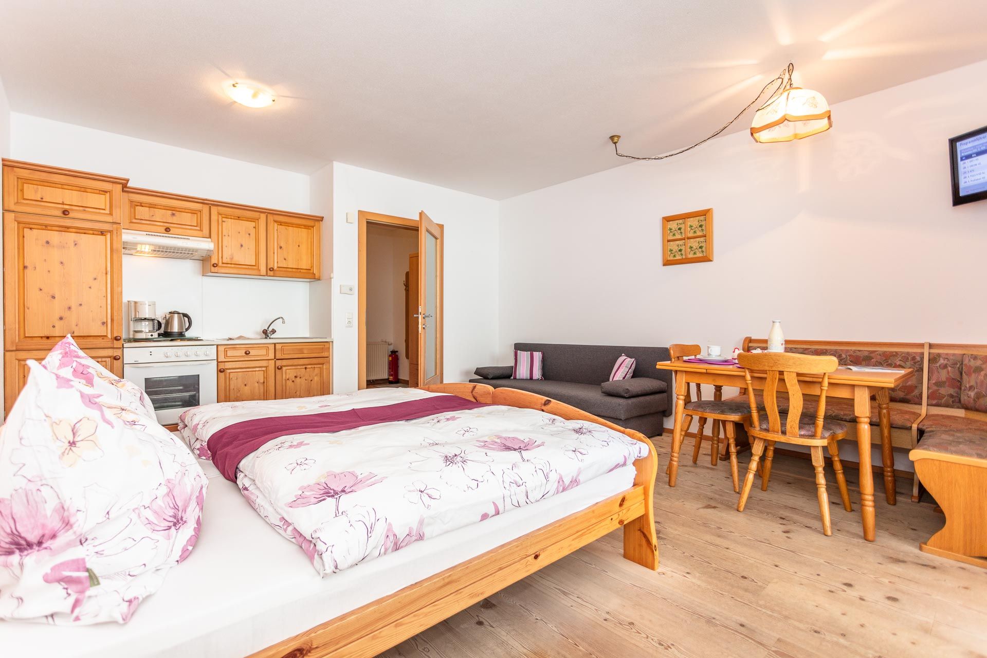 Die gemütliche Ferienwohnung Schmittenhöhe bietet mit ihren 35 m² Wohnfläche Platz für 2 Personen. Über die Garderobe betreten Sie den Wohnschlafbereich sowie das Badezimmer mit Dusche und WC. Den großzügigen und sonnigen Balkon erreichen Sie über den Wohnschlafbereich. Auf dem gemütlichen Balkon haben Sie einen traumhaften Blick auf das Kitzsteinhorn, die Schmittenhöhe und den Zeller See.